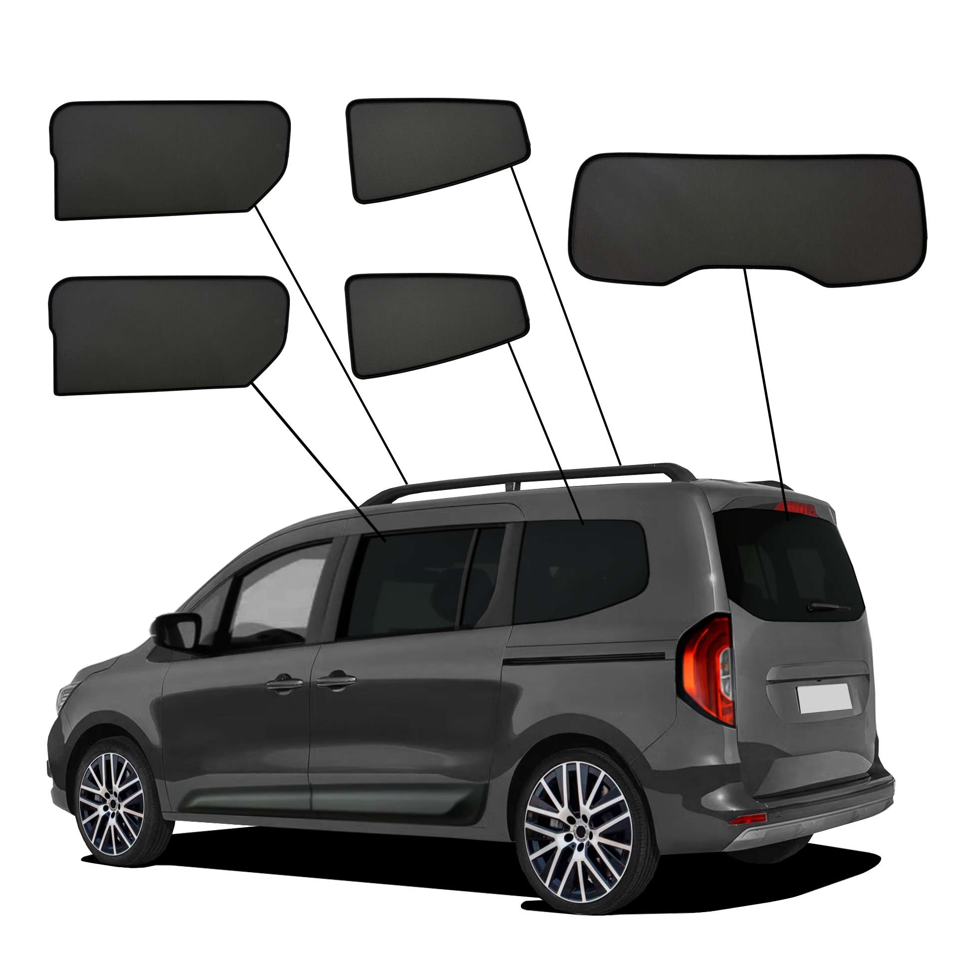 The sun protection for your car consists of custom-fit sunshades. An individual set is available for each vehicle model to guarantee 100% window coverage. The retaining clips hold the sun protection securely in place.